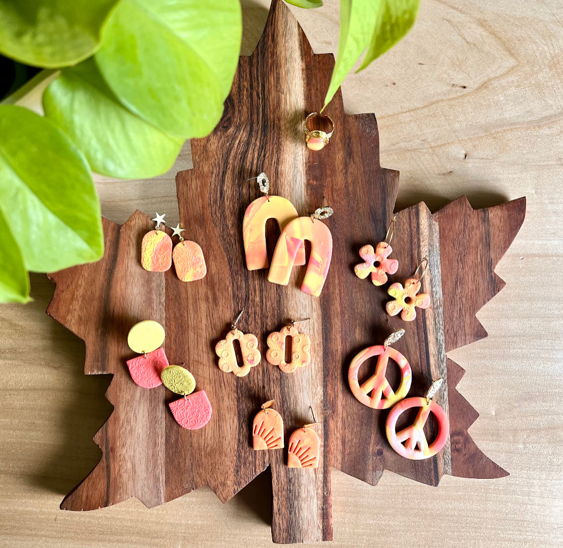 Welcome to my creative home! I handcraft earrings in my home studio for you and your friends. Each pair of earrings or tray or ornament is made with my love and sent to spark joy with you or someone you love. Thanks for stopping by and I hope you leave with something colorful!